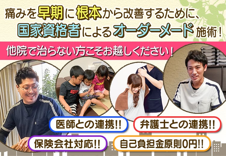 続き下は1歳の方から施術をお受けいただいておりますので、お子様が交通事故に遭われたという方も安心してお越しいただけます。